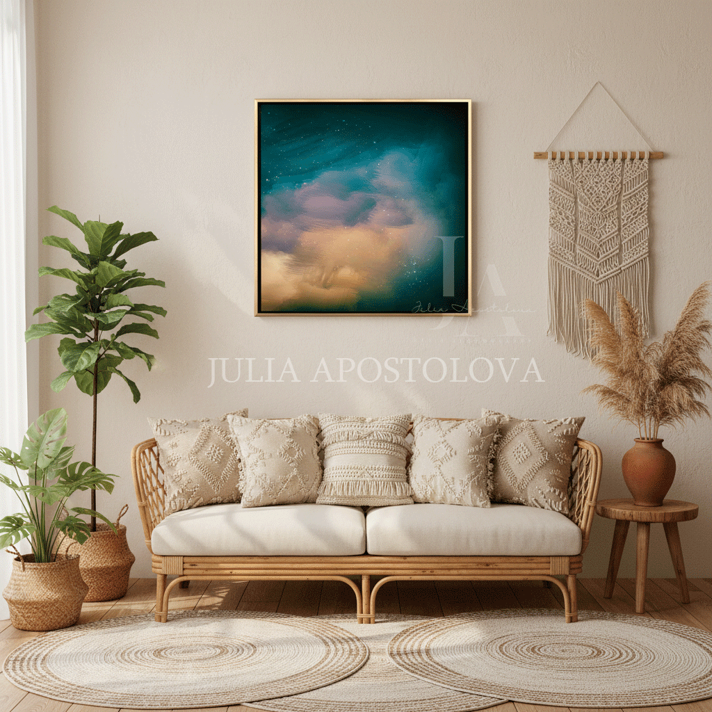 SIGNED: Signed by artist Julia Apostolova on the back of canvas.