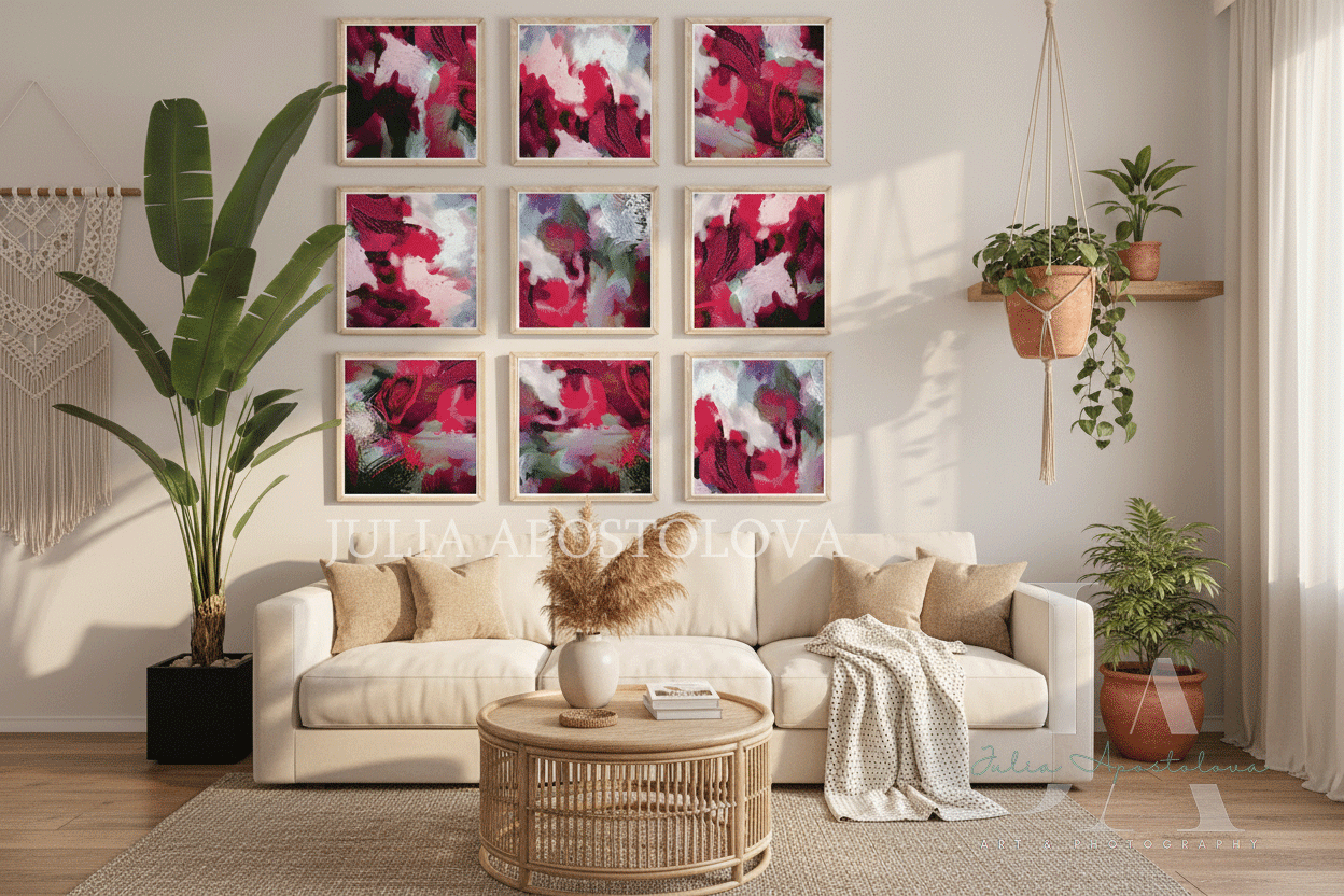 SIZE: Total size of each individual Framed Canvas is Approx. 20 cm x 20 cm x 3 cm (8" x 8" x 1.2") The size of each canvas painting inside is Approx. 16 cm x 16 cm (6,5" x 6,5").