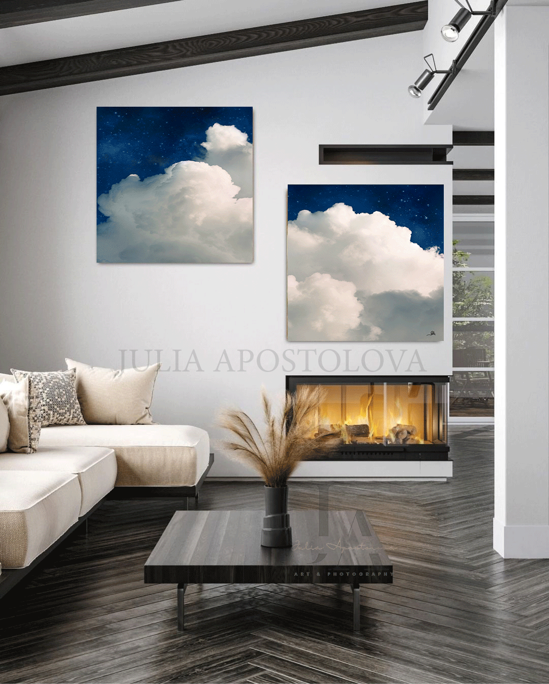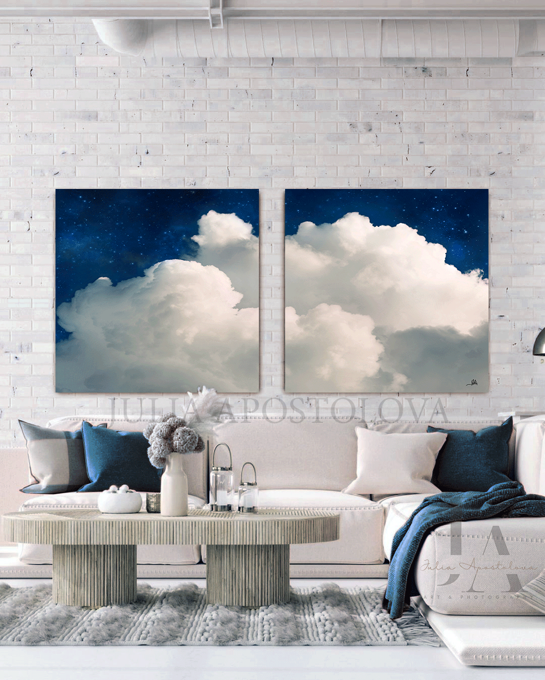 Transform your space with this gorgeous and trendy large Set of Two Celestial cloud abstract artworks! Will make a real statement in any room and will be perfect sophisticated gift for yourself or someone special!